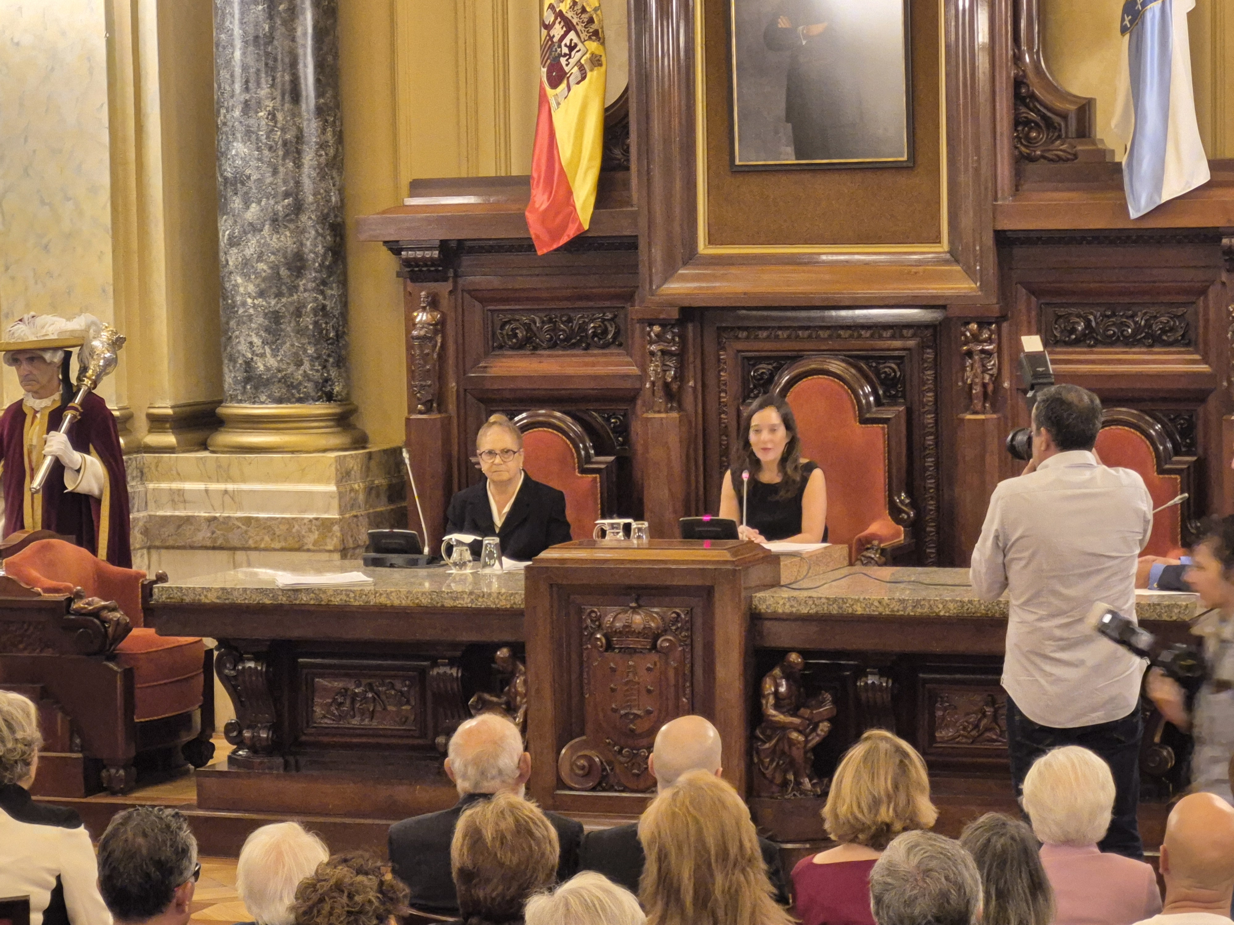 El concello de A Coruña acogió ayer por la tarde el nombramiento de la farmacéutica colegiada Rosa Otero Raña como hija adoptiva de la ciudad. Recibió el nombramiento de manos de la alcaldesa, Inés Rey, y en un salón de plenos lleno de personalidades relevantes de la ciudad, como Francisco Vázquez, Romay Beccaría, Belén Docampo, Javier Losada, Cristina Pérez Fernández, Luciano Vidán y diferentes concejales y exconcejales de todos los partidos políticos.