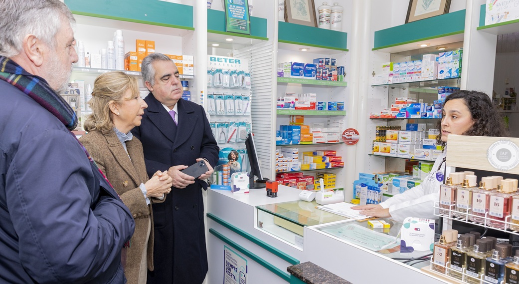 Responsables del Colegio Oficial de Médicos de A Coruña, Luciano Vidán, y del Colegio Oficial de Farmacéuticos de A Coruña, Sara Catrain, acompañaron a Augusto Chereguini, delegado Especial de ISFAS, a testear la puesta en marcha del proceso en la farmacia Ciudad Vieja de A Coruña, con ayuda de Nerea Queiro, farmacéutica.