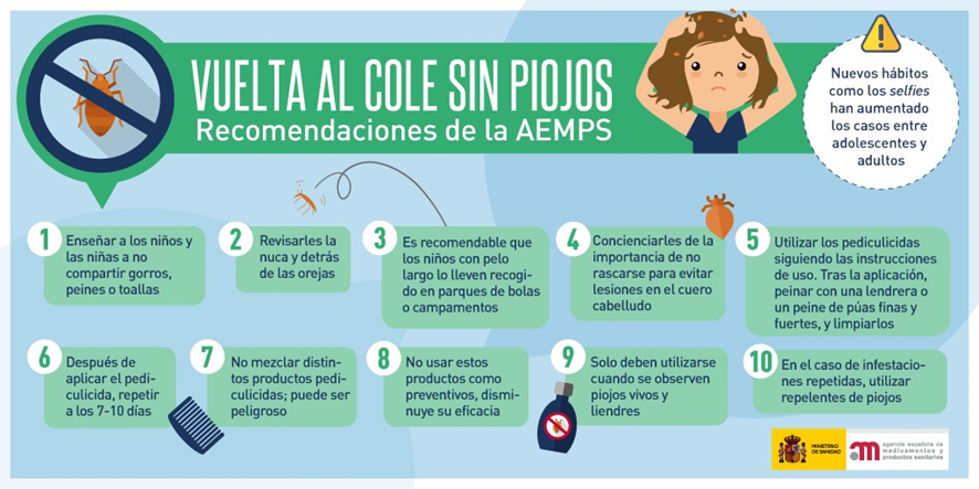 ►La Agencia Española de Medicamentos y Productos Sanitarios (AEMPS) publica unas recomendaciones generales para la prevención y el tratamiento de las pediculosis, así como para el uso correcto de productos pediculicidas, que sirven para tratar estas infestaciones de piojos y liendres: